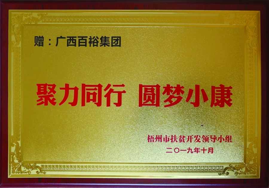 為進一步動員各民營企業(yè)、社會組織、社會各界愛心人士積極參與到扶貧攻堅的壯麗事業(yè)中來,形成“人人皆愿為、人人皆可為、人人皆能為”的社會扶貧參與機制,集中社會各方力量高質(zhì)量打贏打好脫貧攻堅戰(zhàn),在10月17日我國第6個“扶貧日”來臨之際,10月16日晚梧州市2019年國家扶貧日“提高脫貧質(zhì)量 鞏固脫貧成果”主題公益晚會上,百裕集團多年來積極助力脫貧攻堅戰(zhàn)役和社會公益活動工作成績顯著得到表彰。