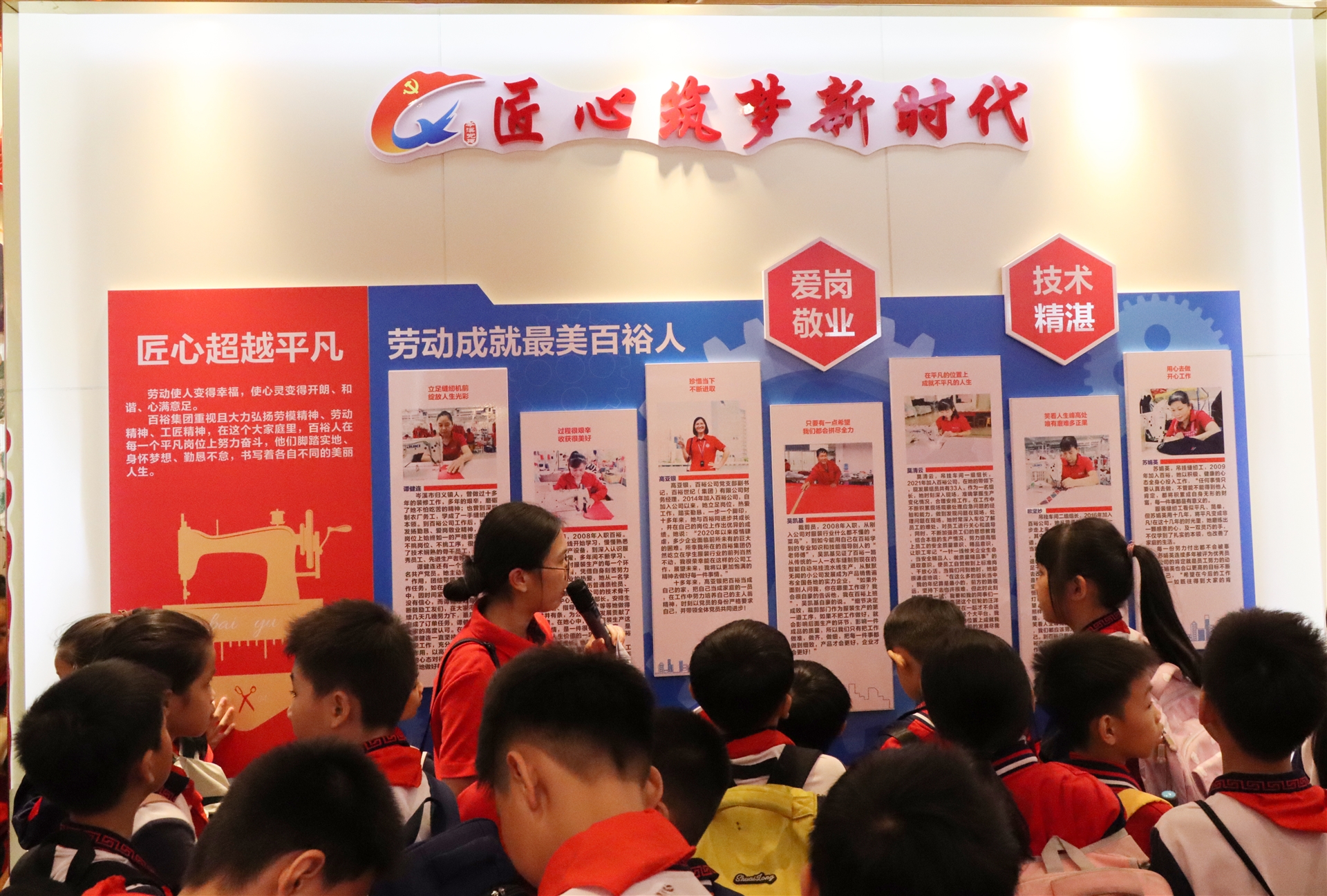 孩子們走進(jìn)了百裕集團(tuán)黨建中心,了解到了百裕集團(tuán)的發(fā)展歷程、取得的成績及榮譽(yù)。接著還到“五一勞動(dòng)獎(jiǎng)?wù)隆薄⒓寄艽筚愐坏泉?jiǎng)和“身邊最美黨員”稱號(hào)獲得者的相關(guān)工位,聆聽了他們的故事,學(xué)習(xí)到了偉大的工匠精神。