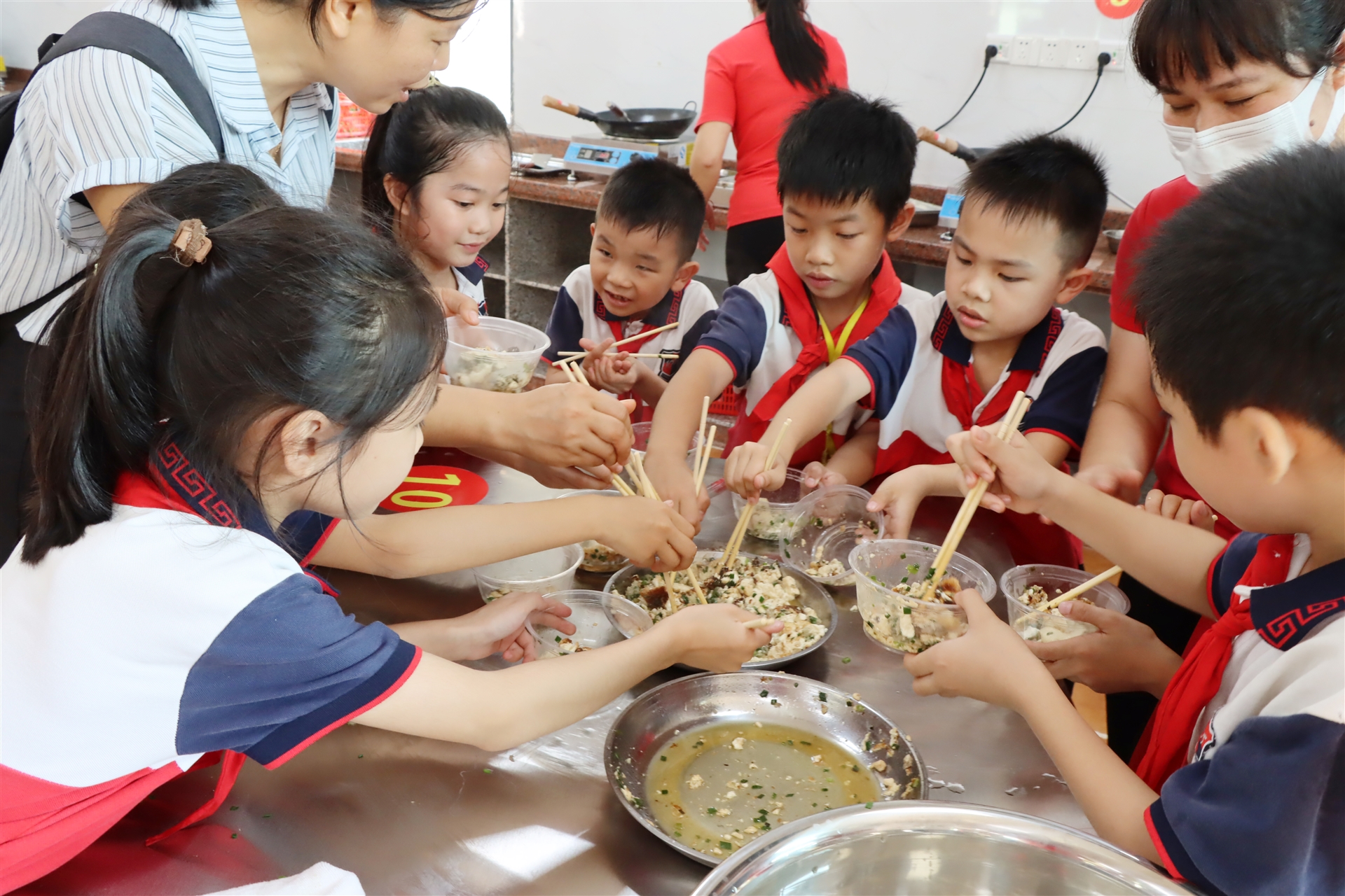 桌子上擺放著面粉、調(diào)好的餡料還有搟面杖,孩子們變身成了小小廚師,在家長的指導(dǎo)下迫不及待地制作餃子:他們拿起餃子皮,舀上餡料,小心翼翼地捏合......熱鬧的現(xiàn)場氛圍不時(shí)傳出陣陣歡笑聲。