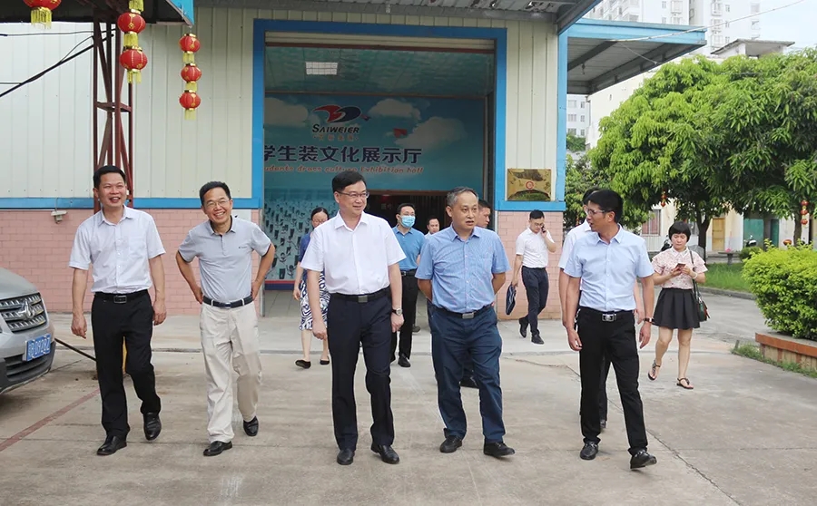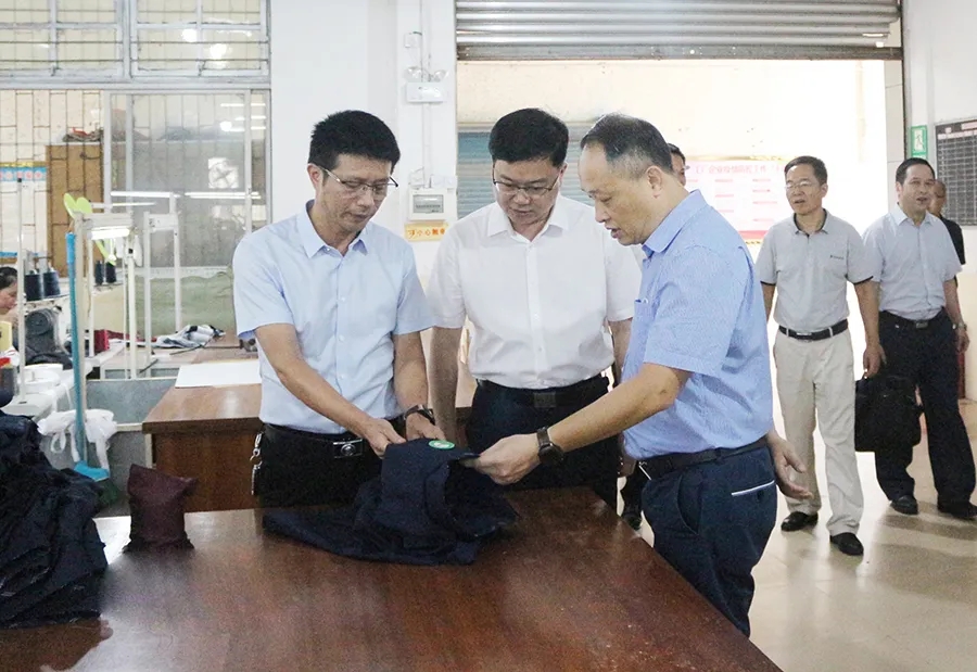 梁藝光副廳長(zhǎng)一行人先后參觀了校服文化展示中心、服裝生產(chǎn)車間,期間曾晏來總經(jīng)理向梁藝光副廳長(zhǎng)詳細(xì)介紹了公司疫情防控工作的落實(shí)情況,及復(fù)工復(fù)產(chǎn)、公司經(jīng)營(yíng)發(fā)展的情況,表示在疫情期間一定繼續(xù)做好防控措施,保障員工健康安全,確保企業(yè)生產(chǎn)經(jīng)營(yíng)有序開展。