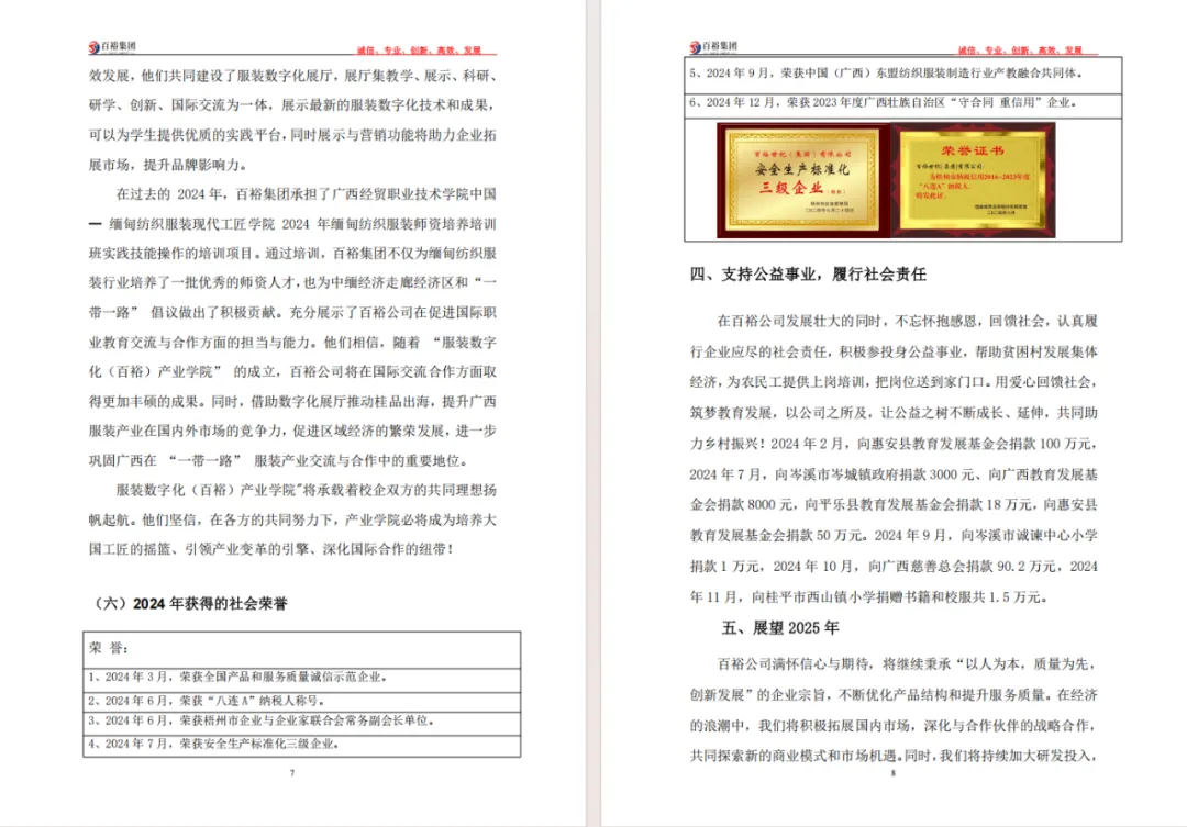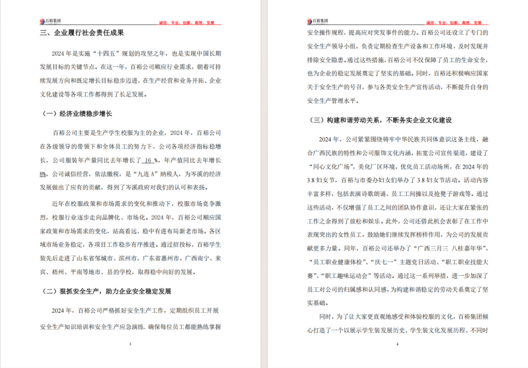 百裕集團2024年度社會責任報告的發(fā)布,不僅是企業(yè)對社會各界的責任承諾,更是對自身可持續(xù)發(fā)展的戰(zhàn)略規(guī)劃。未來,百裕集團將繼續(xù)秉承"時尚傳承,責任同行"的理念,以責任鑄就品牌,以行動回饋社會,持續(xù)書寫企業(yè)與社會共同發(fā)展的新篇章,為行業(yè)可持續(xù)發(fā)展和社會和諧進步貢獻更多力量。