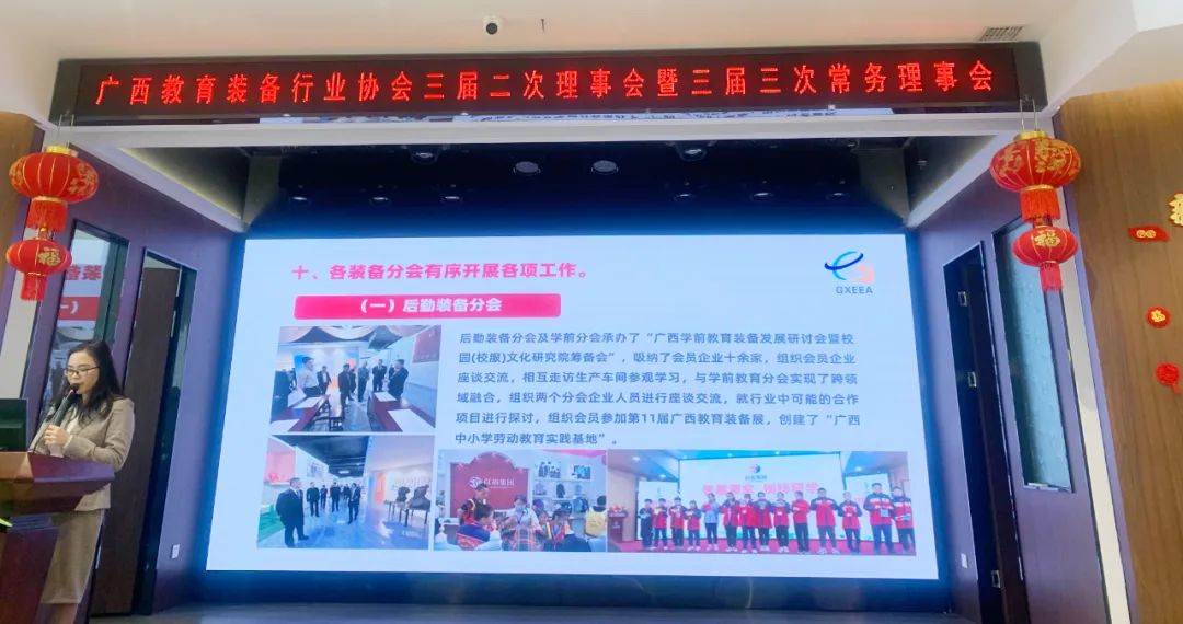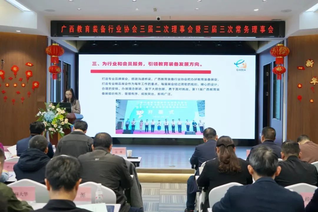 2023年2月16日,廣西教育裝備行業(yè)協(xié)會(huì)三屆二次理事會(huì)暨三屆三次常務(wù)理事會(huì)圓滿召開。協(xié)會(huì)會(huì)長、常務(wù)副會(huì)長、常務(wù)理事、理事以及部分特邀企業(yè)代表共100多人參加會(huì)議。區(qū)教育廳、南寧市、崇左市、玉林市、貴港市、欽州市等市縣教育裝備站領(lǐng)導(dǎo)蒞臨會(huì)議指導(dǎo)。