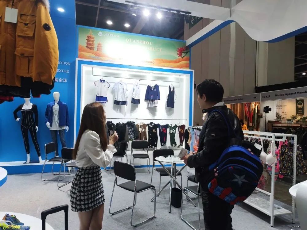 百裕校園時代精品服飾亮相紡織服裝產業(yè)國際合作對接會會場,百裕校園時代校園服飾以“科技創(chuàng)新、著裝育人、呵護明天、文化傳承”為品牌理念;此次展示的精品服飾融入了民族文化元素,科技面料及工藝、時尚流行元素等,向參觀者展示了校園服飾的獨特魅力,不斷吸引了眾多參觀者駐足與關注。受到廣大觀眾的與閩港兩地的政商代表們進行深入交流,攜手探索紡織產業(yè)的新格局、新生態(tài),攜手合作共謀發(fā)展。