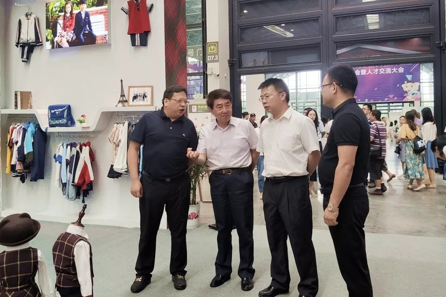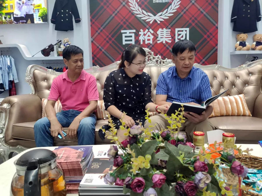 百裕集團(tuán)工作人員向現(xiàn)場來賓講解百裕校園時代當(dāng)季服裝的品牌理念和款式設(shè)計。時尚美觀又不乏個性的校園服飾引起了現(xiàn)場觀眾濃厚的興趣,大家紛紛駐足觀看、詢問交流。期間,工作得到了各級領(lǐng)導(dǎo)的現(xiàn)場指導(dǎo)。