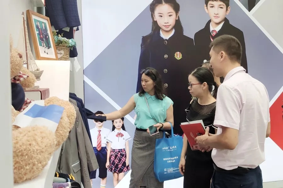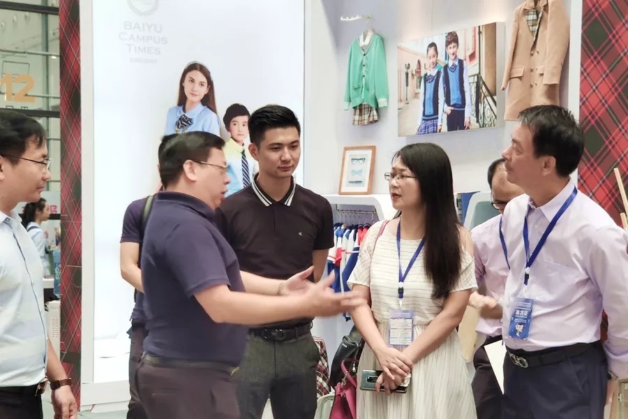 此次展會,百裕校園時代帶來的幼兒園、中小學(xué)禮服、運(yùn)動服等一系列校園服飾產(chǎn)品案例,可針對不同學(xué)校、地區(qū)需求給出最合理的方案?,F(xiàn)場大屏幕上滾動播放集團(tuán)介紹、品牌建設(shè)等視頻,以及現(xiàn)場產(chǎn)品實物的展示,吸引了眾多觀眾的眼球,并與銷售人員面對面溝通,展會現(xiàn)場氣氛熱烈。