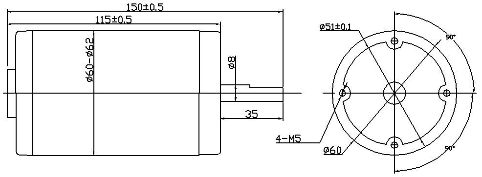 | 型號(hào) | 電壓 (V)DC | 額定電流 (A) | 額定轉(zhuǎn)速 (r/min) | 額定功率 (W) | 額定扭矩 (N.m) | 長(zhǎng)度 (mm) |